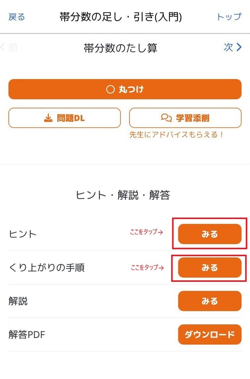 まずはヒント画像や繰り上がりの手順の動画を見て、解き方を確認しましょう