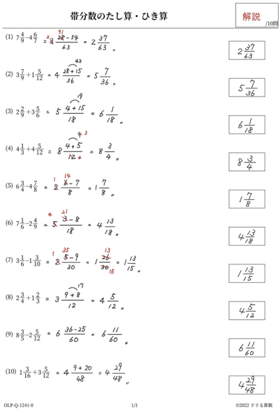 帯分数の足し・引き算を帯分数のまま計算する練習をすることができます。