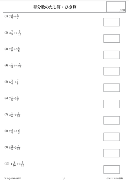 帯分数のたし・ひき算を、帯分数のまま計算する練習をしたい小学生